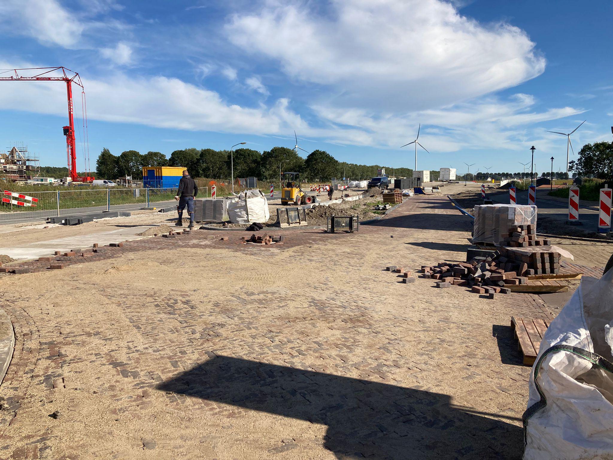 Aan de Nobellaan ligt de rijweg er grotendeels in en de busbaan begint steeds meer herkenbaar te worden met de stoepranden die de contouren laten zien.