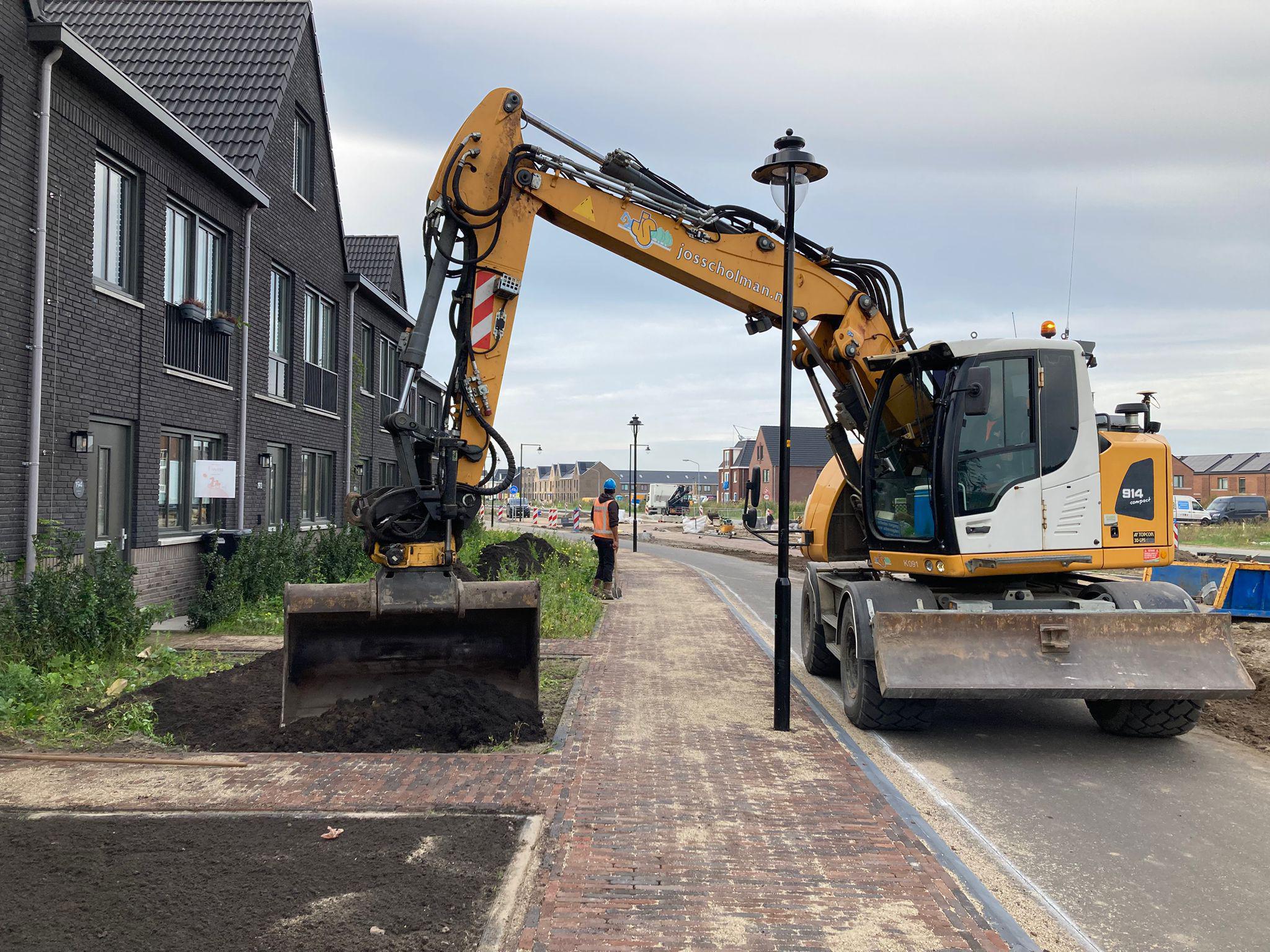 In deze straat zijn we volop bezig met het bestraten. Dat betekent dat de weg even dicht is, maar straks ligt er weer een strak wegdek.