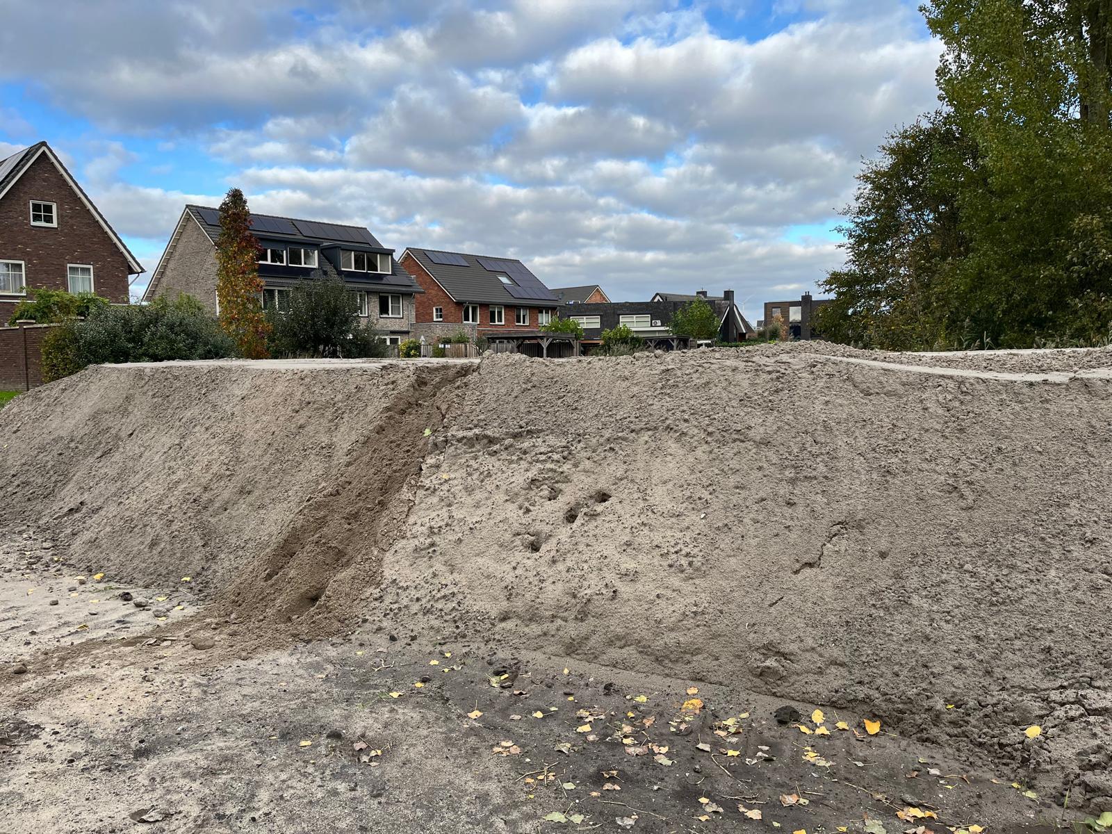 Op de tweede foto kunt u zien hoe hoog de zandlaag is, op dit moment bijna 2 meter! Er is dus veel gewicht nodig om de grond te laten zakken.