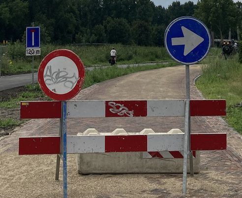 Wij doen ons best om de huisnummers 26 t/m 36 bereikbaar te houden vanaf de kant van de Marie Curiestraat.