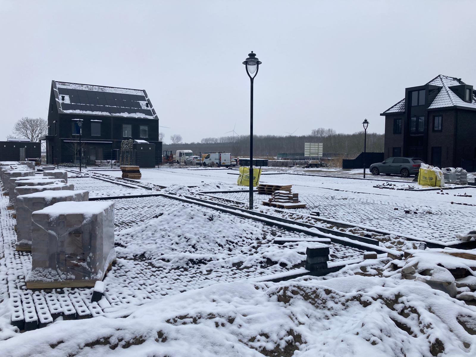 Deze week maakten vorst en sneeuw onze werkzaamheden lastig. Op sommige momenten legden wij het werk zelfs tijdelijk stil. Wij werken namelijk sterk weersafhankelijk. Dat vinden wij vervelend, omdat dit vertraging veroorzaakt en het werk langer laat duren.