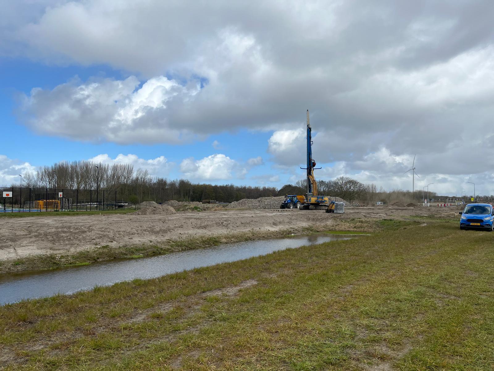 Op deze manier versnellen wij het proces dat normaal jaren kan duren. De grond wordt sneller stevig en zakt nu alvast een beetje in.