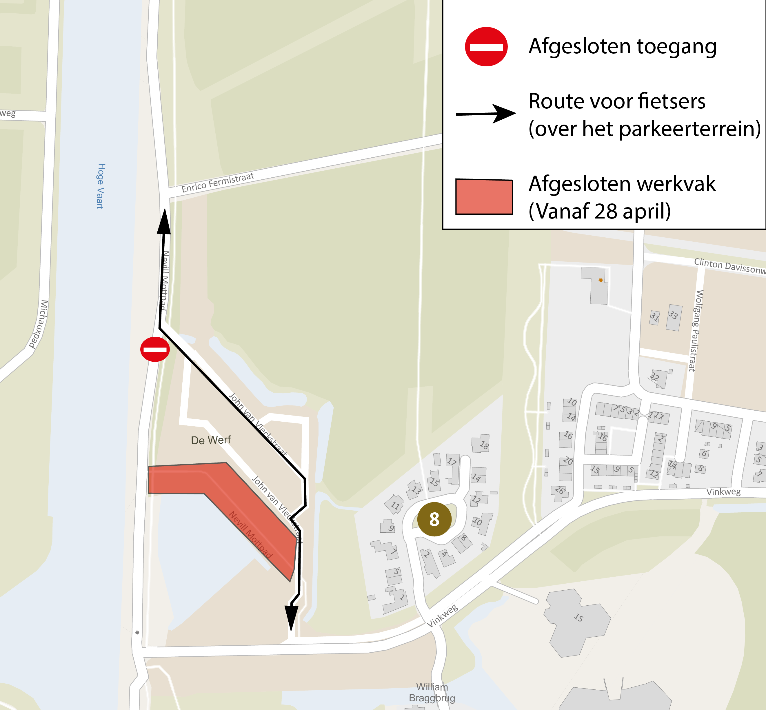Bij De Werf starten wij vanaf dinsdag 28 april met nieuwe werkzaamheden. Wij breken het fietspad langs de flat open en werken hier verder aan de definitieve inrichting van de openbare ruimte.